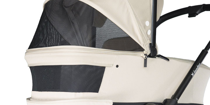 Dotychczasowa wentylacja tego modelu została jeszcze bardziej rozbudowana. Dzięki temu wózek spacerowy Xlander Crusier 2.0 doskonale przepuszcza powietrze, tworząc maluchowi bezpieczne i komfortowe warunki do przejażdżek w ciepłe dni.