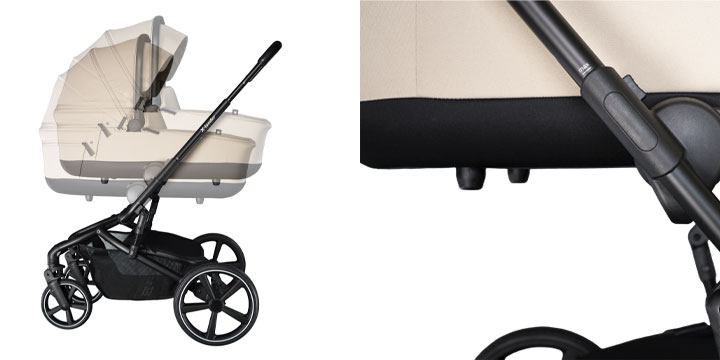 - możliwość stworzenia travel systemu poprzez wpięcie fotelika samochodowego (adaptery w zestawie);
