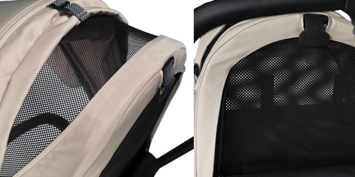 Rozbudowane okna wentylacyjne w gondoli tworzą panoramę. Dzięki temu możemy jeszcze bardziej zwiększyć przepływ powietrza w upalne dni, lub po prostu urozmaicić maluszkowi widoki podczas jazdy na brzuchu.
