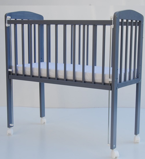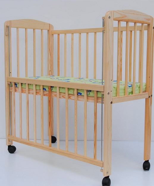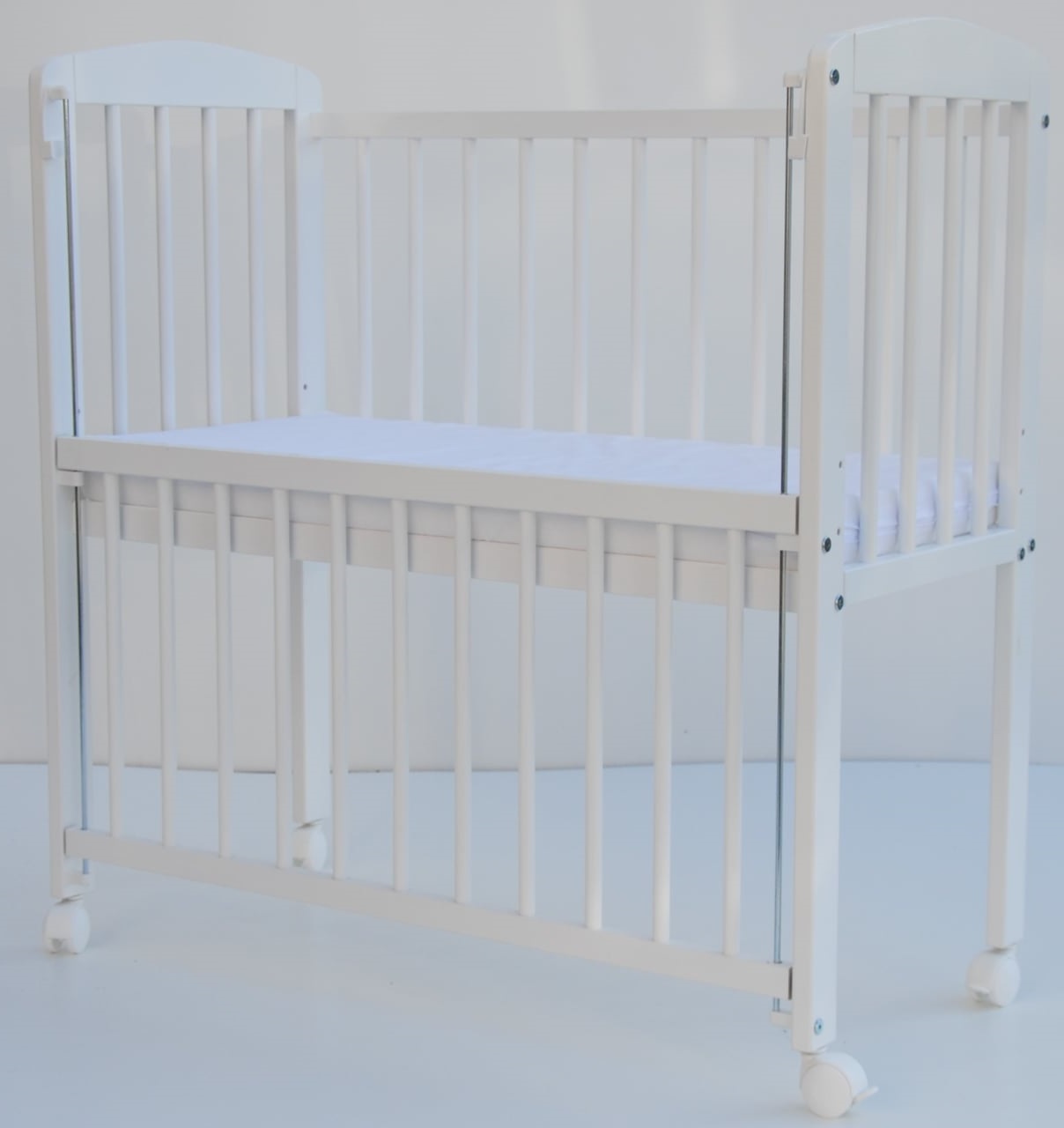 Łóżeczko dostawne 90 cm x 40 cm z opuszczanym bokiem i kółkami. Wykonane przez polskiego producenta, z polskich surowców z drzewa sosnowego I gatunku. Solidna konstrukcja zapewnia stabilność dostawki