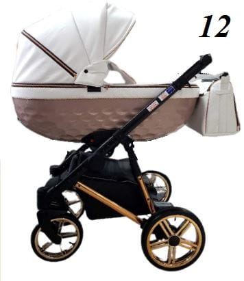 w wózku OXV-3D koła żelowe są kolorystycznie dopasowane pod stelaż wózka, czyli posiadają dpdatki złota, miedzi lub srebra