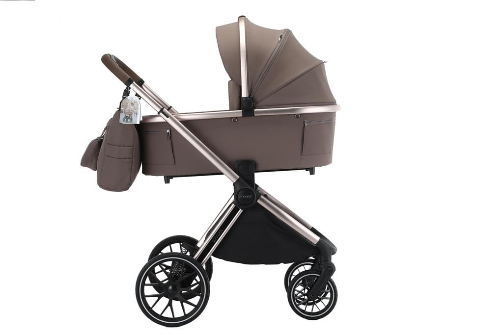Wózek SPARK to model 3w1 charakteryzujący się funkcjonalnością oraz stylem. Został zaprojektowany z dbałością o najmniejsze detale, oferując wyjątkowy komfort zarówno dziecku, jak i rodzicom. W wersji Champagne wózek posiada anodowany stelaż w kolorze szampańskiego złota oraz eleganckie dodatki w kolorze ciemnego poleru.