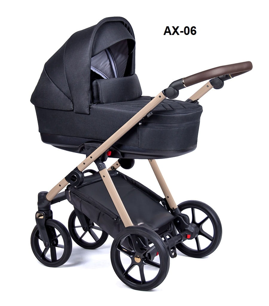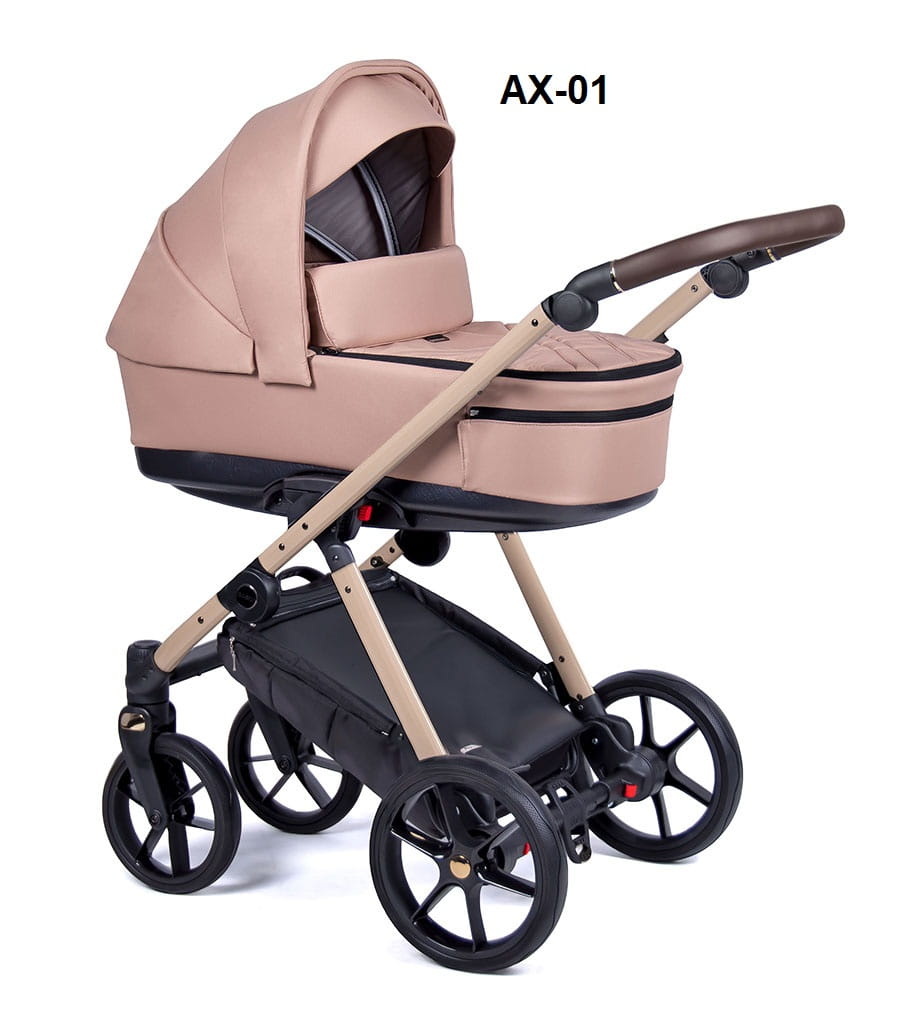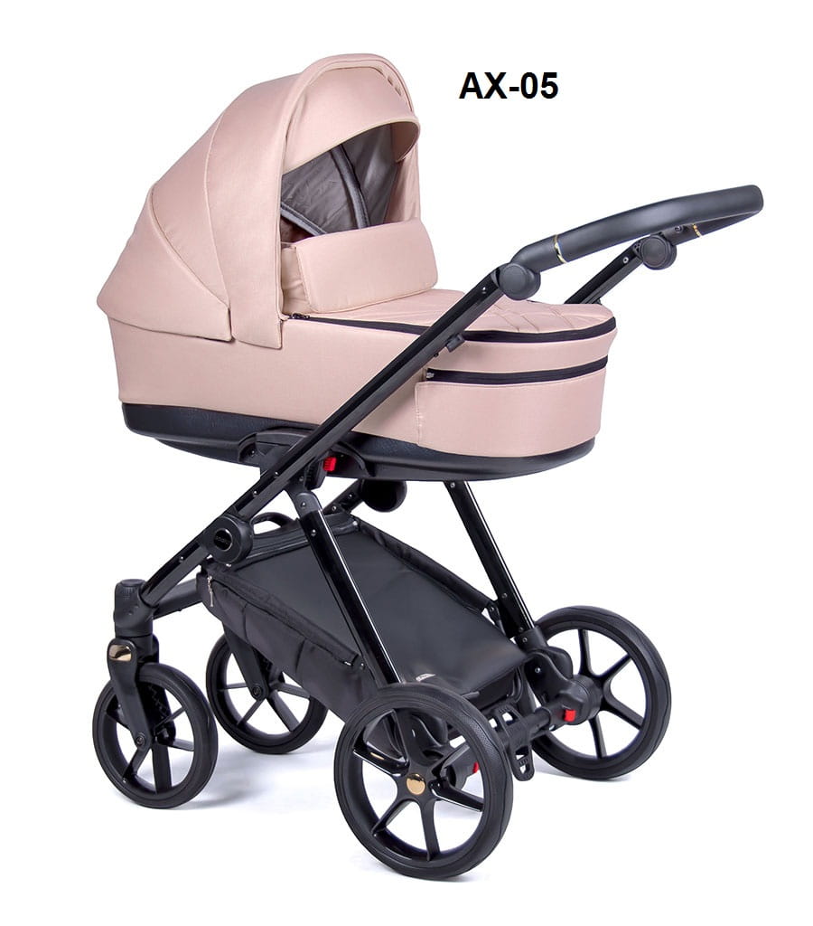 Najnowszy wózek z naszej kolekcji to doskonałe połączenie stylu, wygody i funkcjonalności. Lekki, ale wytrzymały aluminiowy stelaż zapewnia stabilność i manewrowość. Może być łatwo składany i rozkładany za pomocą jednej ręki, co ułatwia przechowywanie i transport. Duże, wytrzymałe koła żelowe świetnie sprawdzają się zarówno na gładkich powierzchniach, jak i na nierównych terenach. Przednie koła są skrętne, co ułatwia manewrowanie, a amortyzacja sprawia, że jazda jest wyjątkowo płynna i komfortowa. Axiss posiada również dobrze przemyślaną wentylację w gondoli, aby zapewnić komfort i zdrowe warunki dla dziecka podczas spacerów.