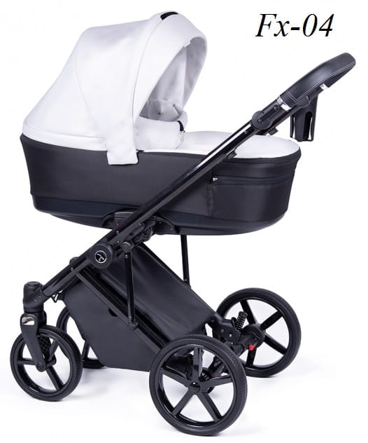 Wersja Premium wózka Fado - budka oraz przykrycie na nóżki w gondoli i spacerówce wykonane są z ekoskóry. Jej właściwości sprawiają, że jest trwała, łatwa do czyszczenia i odporna na warunki atmosferyczne, a zarazem całkowicie bezpieczna dla dziecka. Wnętrze wózka stanowi przyjazna dla dziecka miękka tkanina. Fado FX to wózek wielofunkcyjny, który charakteryzuje się niską wagą - tylko 12,6 kg w wersji z gondolą.