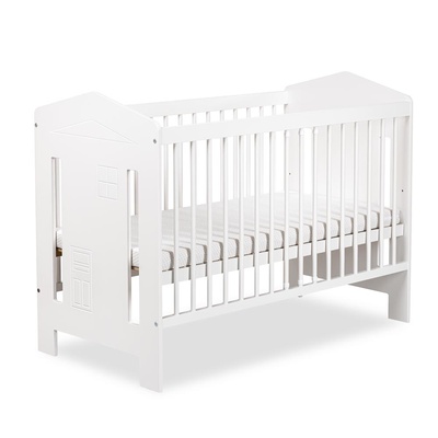Łóżeczko dziecięce IDA wykonane jest z płyty MDF oraz drewna, zostało stworzone z myślą o zapewnieniu bezpieczeństwa dziecku podczas snu, a także spokoju rodziców. Wzór domku na szczycie wykonanym z malowanej płyty MDF z pewnością zaciekawi każdego maluszka.