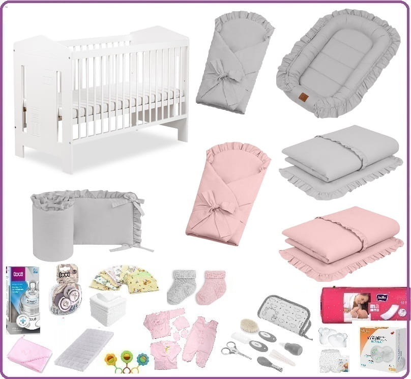WYPRAWKA została stworzona z polskich produktów najwyższej jakości. W zestawie oprócz produktów dla mamy i maluszka znajdziecie przepiękne łóżeczko z całym wyposażeniem