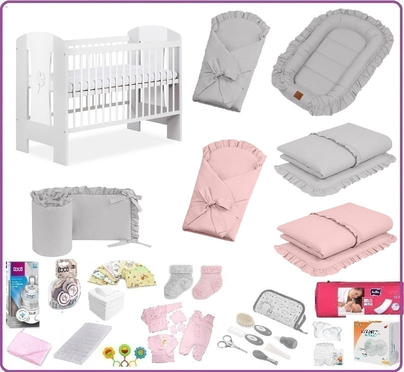 WYPRAWKA została stworzona z polskich produktów najwyższej jakości. W zestawie oprócz produktów dla mamy i maluszka znajdziecie przepiękne łóżeczko z całym wyposażeniem
