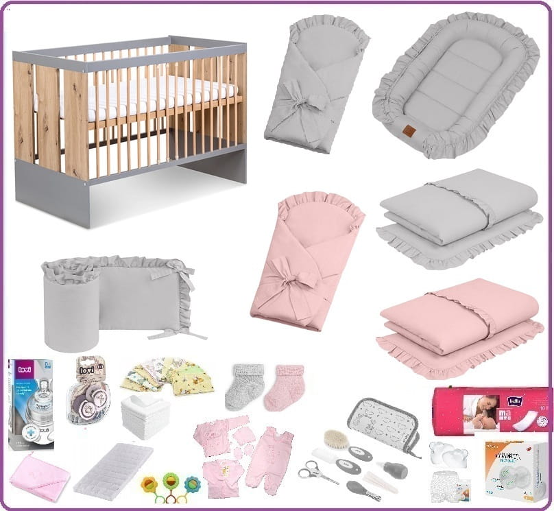 WYPRAWKA została stworzona z polskich produktów najwyższej jakości. W zestawie oprócz produktów dla mamy i maluszka znajdziecie przepiękne łóżeczko z całym wyposażeniem
