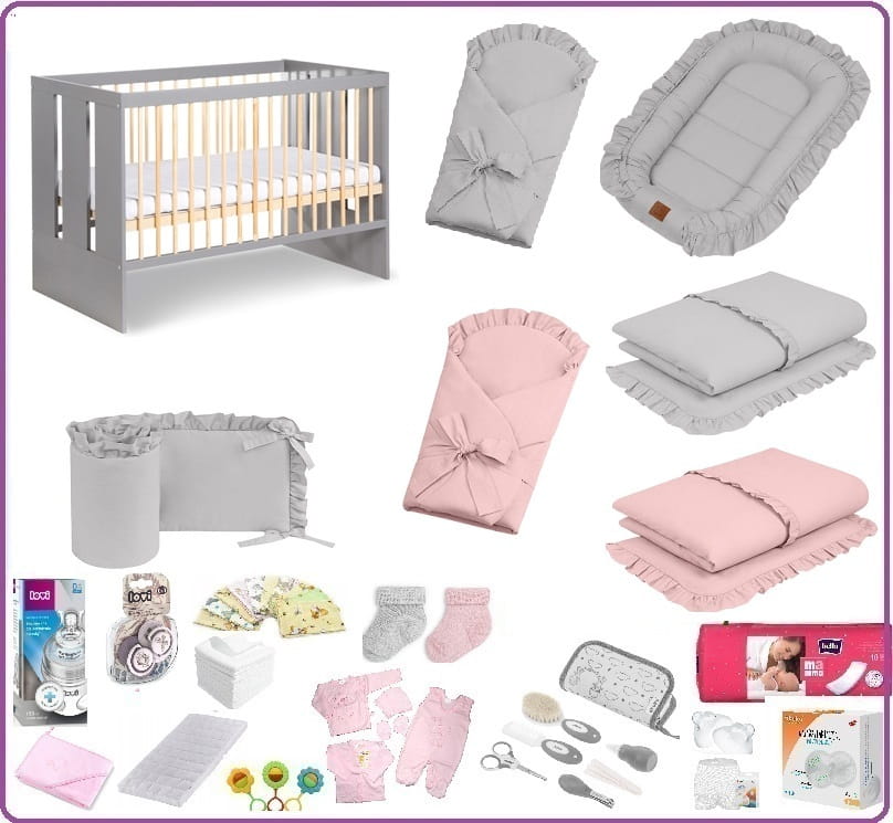 WYPRAWKA została stworzona z polskich produktów najwyższej jakości. W zestawie oprócz produktów dla mamy i maluszka znajdziecie przepiękne łóżeczko z całym wyposażeniem