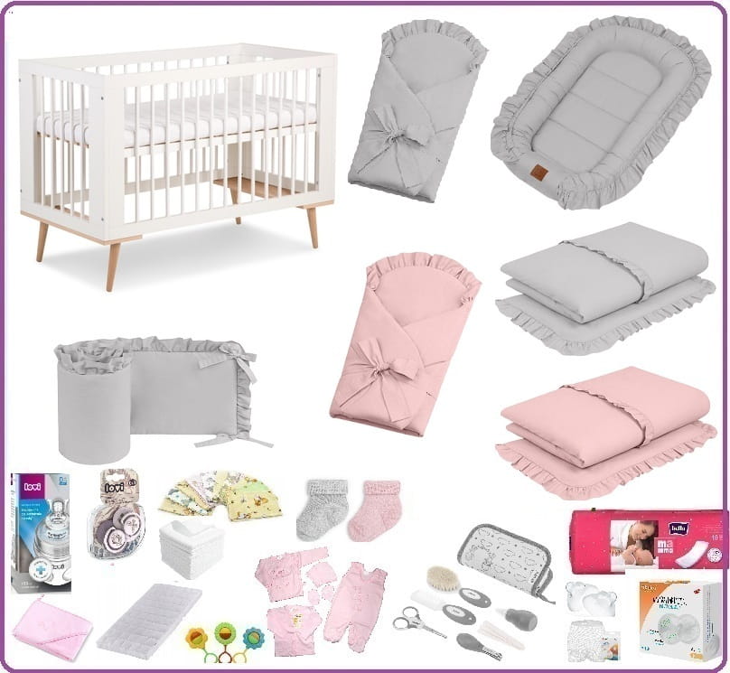 WYPRAWKA została stworzona z polskich produktów najwyższej jakości. W zestawie oprócz produktów dla mamy i maluszka znajdziecie przepiękne łóżeczko z całym wyposażeniem