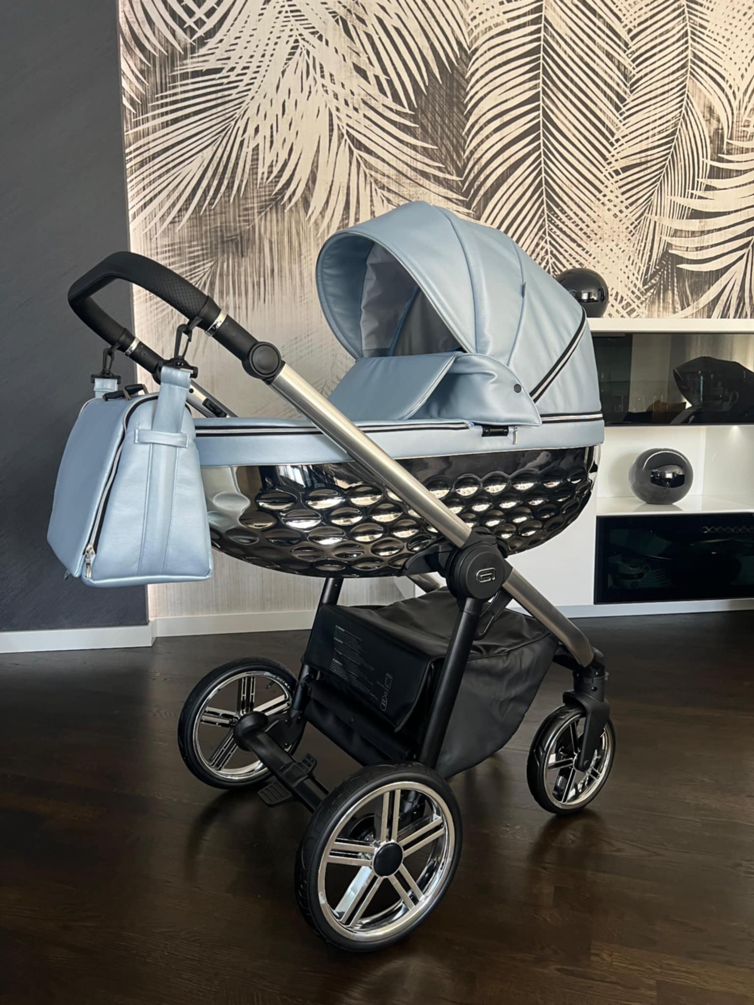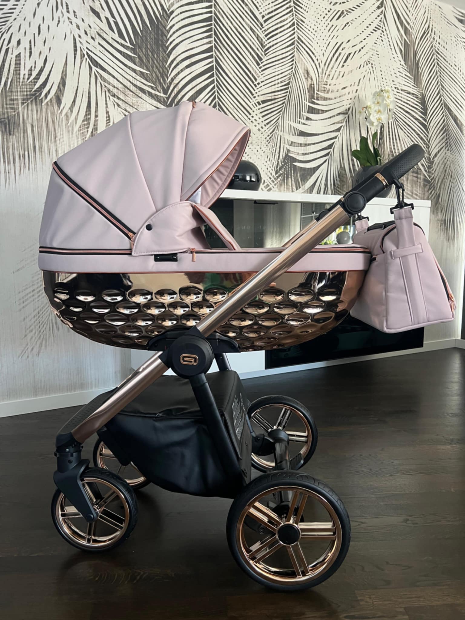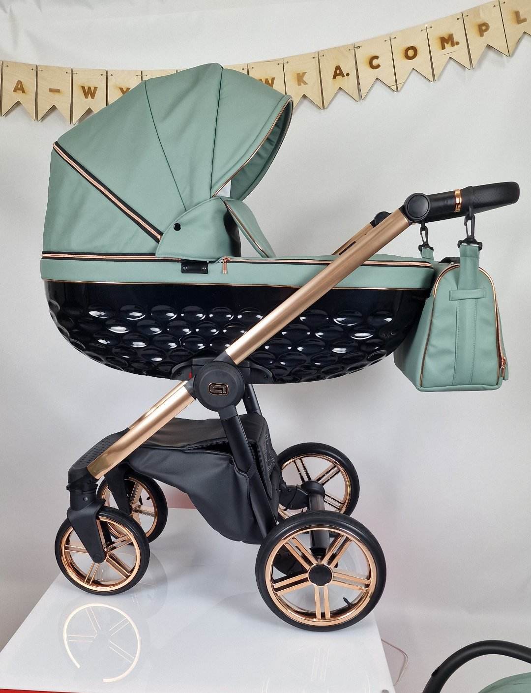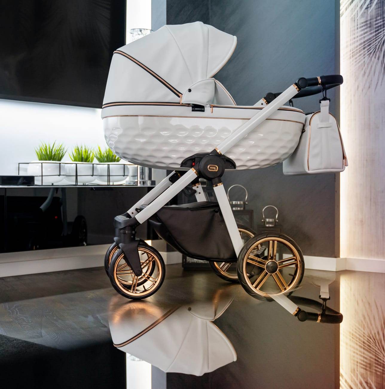-Wentylowaną połyskującą gondolę 3D, w której wysciłka jest z najwyżej klasy antyalergicznej bawełny, a naturalny materacyk dostosowuje się do dziecka i jest odpowiedni dla prawidłowego rozwoju kręgosłupa maluszka.
